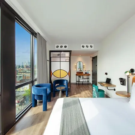 The air-conditioned rooms in Moxy Nyc Lower East Side hotel have wireless internet and a flat-screen TV with satellite channels along with an air conditioner. Bathroom amenities include a walk-in shower and a separate toilet, as well as comforts such as hairdryers and bath sheets.